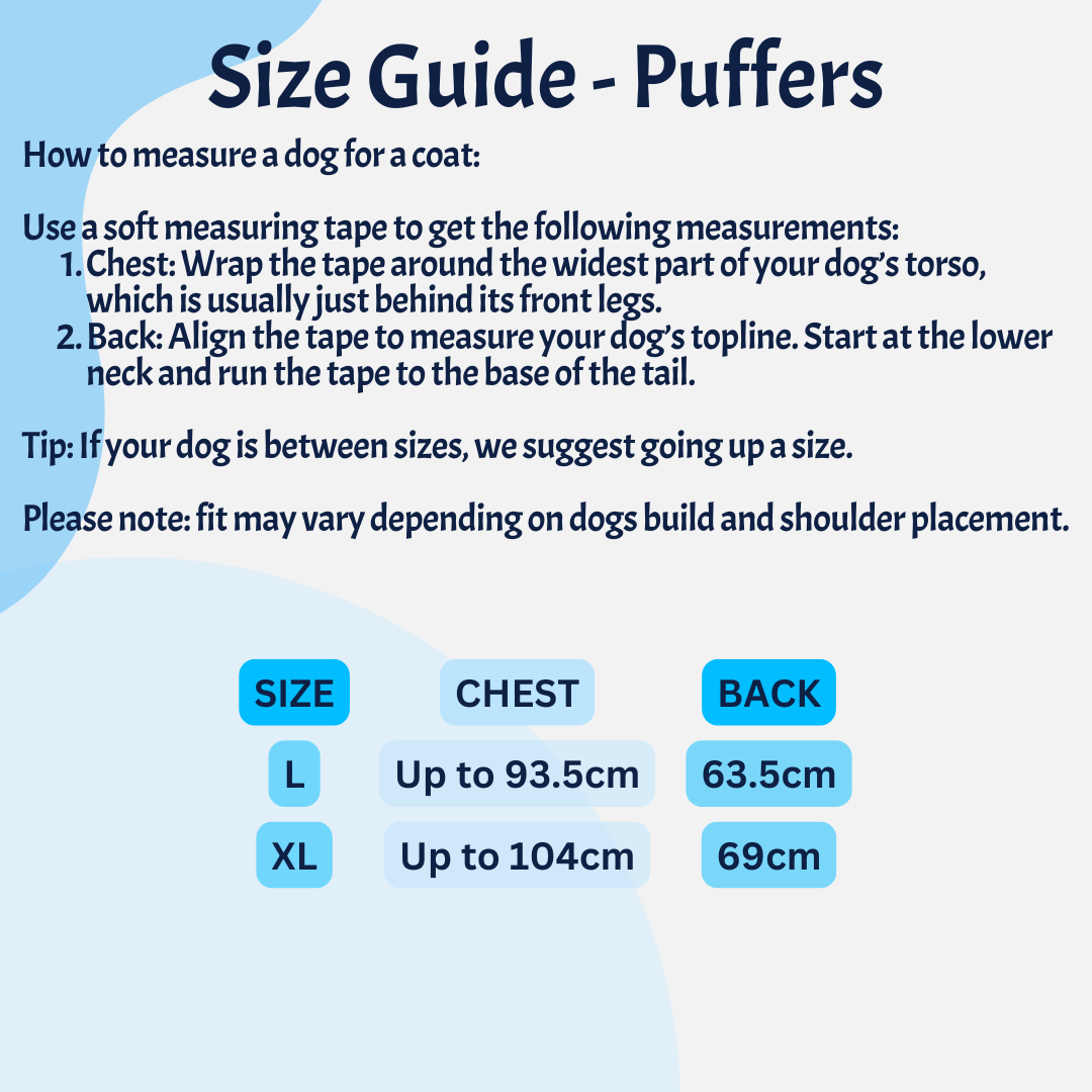 Available in sizes L or XL - check our size chart for the pawfect fit!