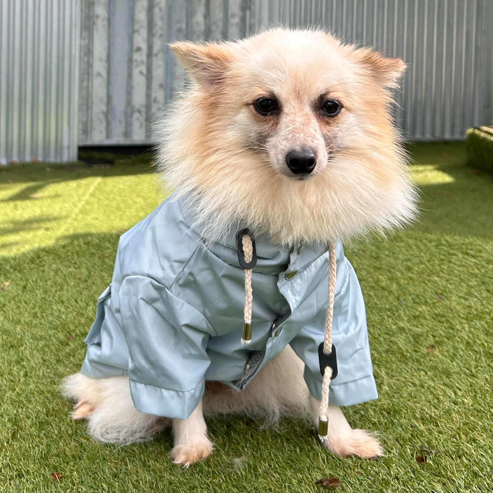 These raincoats are perfect for rainy day dogs walks. Made from quality, water-repellent fabric with front-fastening poppers along the belly and sleeves and featuring underbelly splash protection, a lightweight breathable mesh lining, drawstring hood and hem, a harness hole and two handy little back pockets. Stylish and practical!